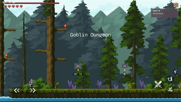 3、选好模式后正式开始,左边控制使用,右边是攻击、跳跃、冲刺和潜行按钮。