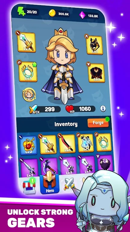 卡通风格的Q版塔防游戏,其中收录了各国的英雄角色,采用Q萌形象进行展示。
