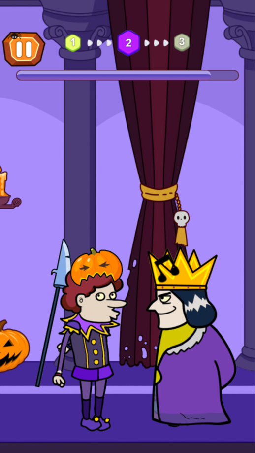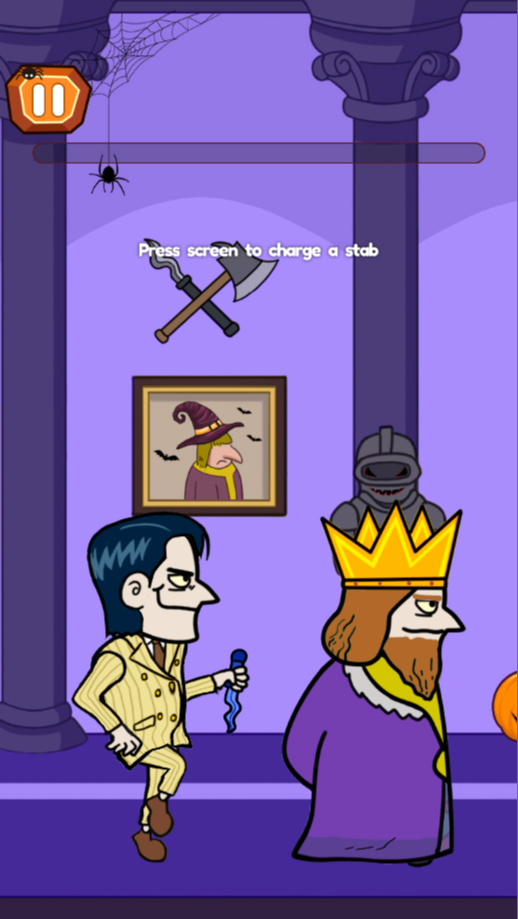 刺杀国王万圣节版是一款休闲益智类小游戏。在游戏刚刚开始时你是一名刺客,你的任务是刺杀国王,点击长按屏幕蓄力,准备好刺杀国王,蓄力完成即可向国王挥刀,在蓄力完成之前如果国王有回头的动作预兆记得及时松开屏幕取消蓄力不然会被国王当场捉住送进大牢,当玩家刺杀成功后会成为新的国王,这时候就需要你时刻保持警惕,防止被刺杀。感兴趣的玩家快来下载游戏,一起开启一场游戏之旅吧!