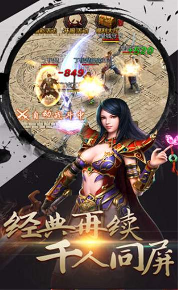 2、战法道三职业经典重现,自由PK怀旧延续,死亡掉装惊喜连连,练级打宝简单粗暴,沙城争霸热血激情!传承传奇经典,再次热血奋战,兄弟共造传奇,千人攻城,打怪爆装,自动升级,全民抢BOSS