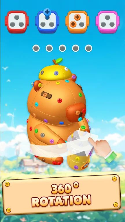 3、匹配颜色类型,逐个移动螺丝,发挥你的创造力和注意力。