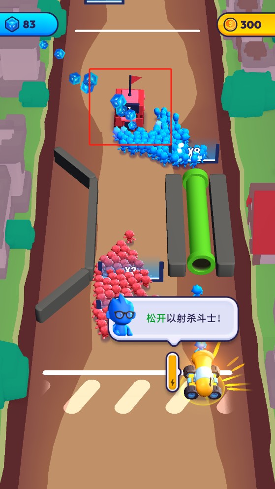2、可以移动大炮的位置,对准倍增门产生更多的炮弹人。