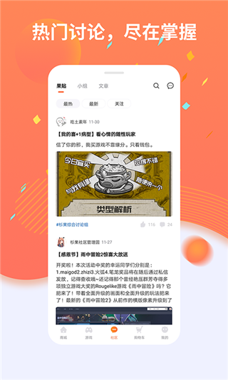 杉果是为喜欢玩电脑游戏的朋友们精心打造的游戏社区软件,每天都会实时更新国内外热门游戏资讯,还提供了游戏状态概览功能,绑定steam、epic平台的账号,随时掌握自己的游戏进度和成就。软件注重提升国内玩家的游戏体验,定期更新海外游戏的中文汉化补丁,国内玩家能够更深入地理解和享受游戏。还为玩家提供一个活跃、友好的交流环境,发布自己的游戏心得、攻略技巧,或者寻求其他玩家的帮助和建议。