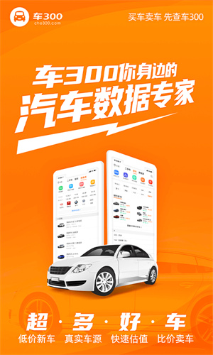 车300二手车免费评估app是一款专业的二手车交易服务软件,能为广大二手车爱好者提供良好的交易保障服务。各种车型的价格与定损服务应有尽有,让卖车人能根据个人心情搭配上平台估值给出价格出售,买车还能查询事故信息,非常安全可靠。
