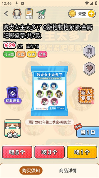 欧气吃谷社为用户提供了丰富的二次元周边商品,具有多种不同的购买形式。在分类的页面,你可以轻松快速找到所需要的二次的商品并购买。还提供了抽卡扭蛋服务,通过抽取盲盒的方式来购物,能够获得什么样的奖品是完全随机的,具有惊喜感。