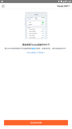 1、打开app,点击【前往wifi列表】跳转到wifi连接界面。