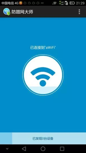 防蹭网大师是一个可以实现网络检测的软件。家里的网络速度总是上不去,不妨看看家里的网络是不是连接了过多的设别。使用防蹭网大师app,软件可以通过自动检测WiFi宽带、IP、上传下载等数据,分析出当前有多少手机,正通过你的WiFi上网。检测完成后,直接展示已连接设备的地址、信息,手动踢出不认识的设备,并自动将其拉黑,杜绝一切通过WiFi钥匙蹭网的行为。