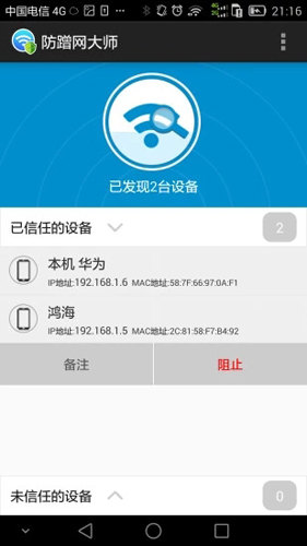 1、几秒钟内扫描出所有连接到您家网络的设备,包括那些隐藏的蹭网设备。