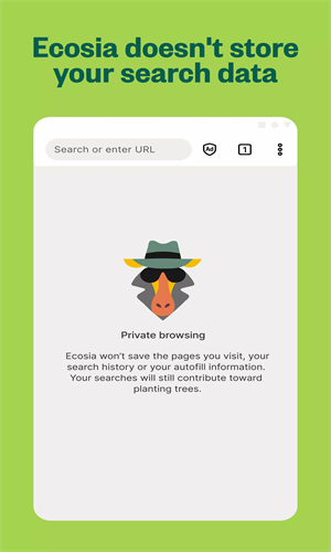ecosia搜索引擎浏览器正如其名,打造了超强的ecosia搜索引擎,是一款与众不同的绿色环保手机浏览器。自带强大的广告拦截功能,与其他浏览器相比,搭载了ecosia搜索引擎的浏览器能让大家快速的找到需要的信息和资料,界面设计简洁明了,使用起来更舒适,除去强大的功能之外ecosia还注重全球的环保服务,浏览器所获得的收益80%都将用于公益,现已经在全球种植了超过1.5亿颗的树木,在上网冲浪的同时还能为地球的绿色环保事业做出贡献。