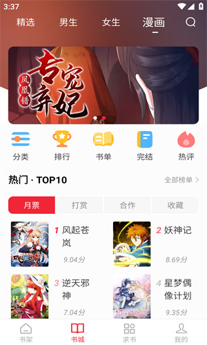2、软件将小说和漫画按照类型进行了分类,方便读者快速去找到自己喜欢的作品。