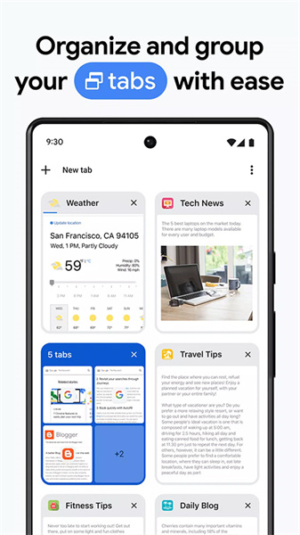 2、用户可以在笔记本电脑、手机或平板电脑上无缝访问并打开标签页和书签。