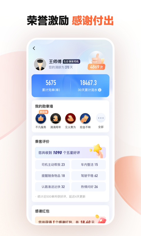 2、完善的司机服务,丰富的平台活动,详细的乘客搭送介绍,让司机朋友能够满意。