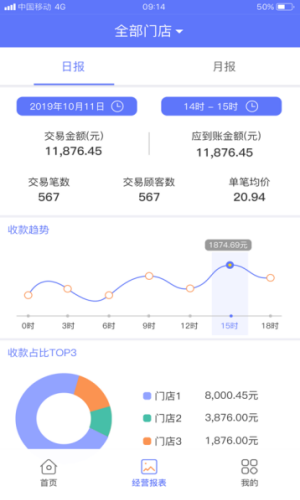 2、提供全面的收款信息分析,助力商户精准掌握当天店铺的经营状况,明晰店铺收入。