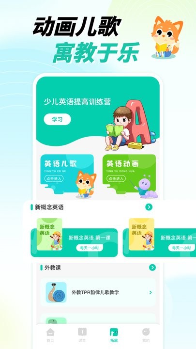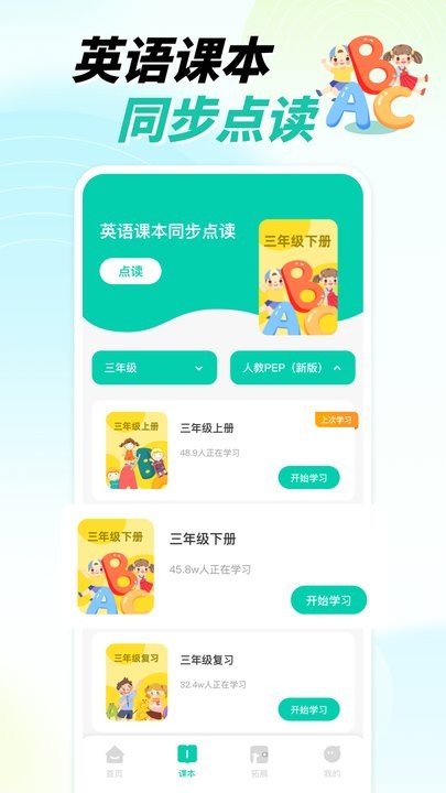 2、提供丰富的英语学习资源,包括了教材、课堂录音等,方便孩子能够随时随地进行学习。
