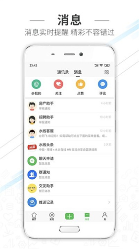 4、点开消息,软件会发布最新的消息,还可以接房产、招聘、聊天等消息。