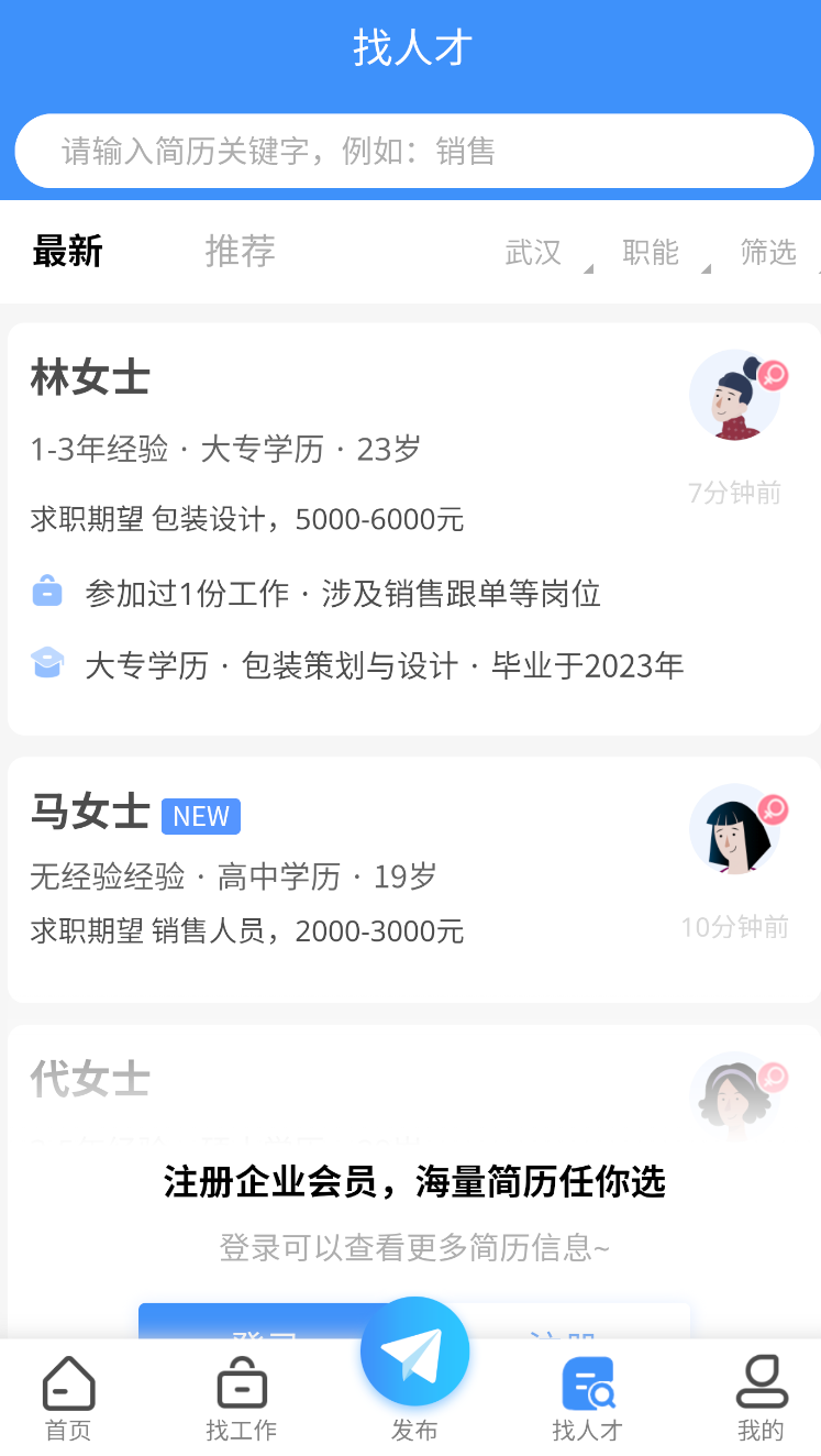 1、企业可以通过大楚人才网发布招聘信息、筛选人才、管理面试和预约面试,找人才更方便。