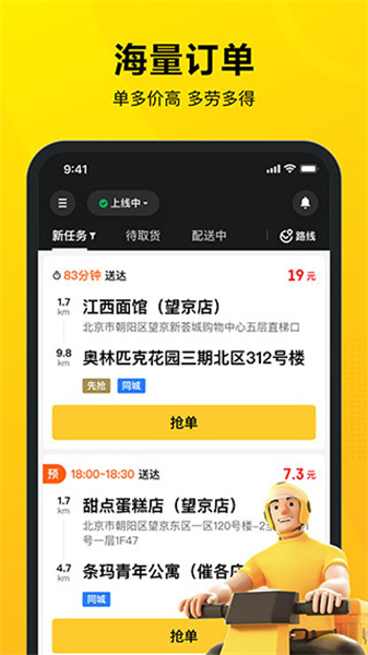 1、美团骑手具有高效的外卖接单系统,确保订单不漏接,满足需求。