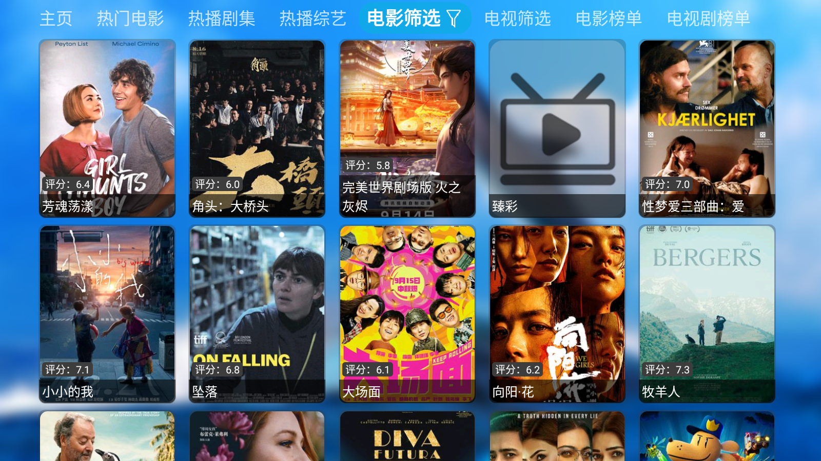 3.缓冲完成后,就可以获得最新影视了,点击顶部影视栏目分类,可切换不同影片类目