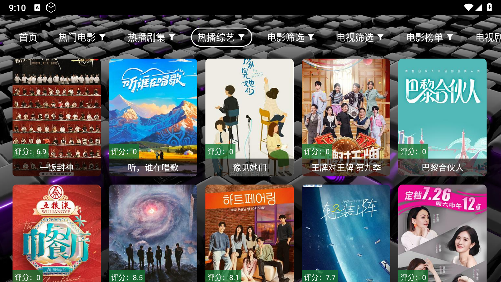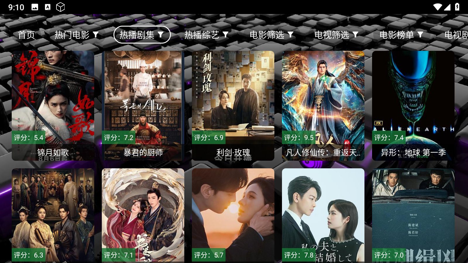 3.点击顶部的影视分类,涵盖热门电影、热播剧集、热播综艺、电影榜单等