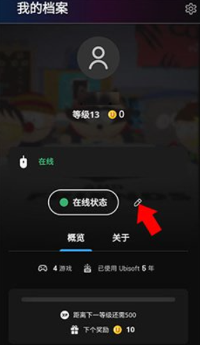 2、进入档案界面后,点击在线状态旁边的铅笔图标