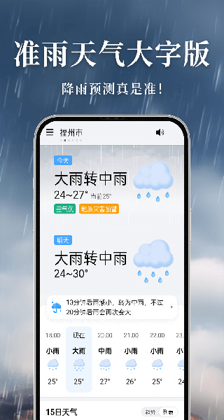 3、准雨天气提供24小时天气预报信息,可了解当天的天气变化信息。