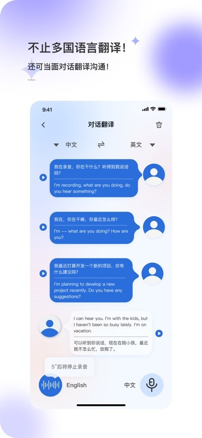 2、在对话翻译中,可以快速将文字语言翻译成需要的内容。
