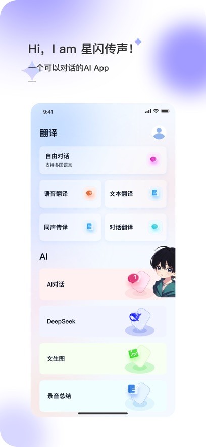星闪传声是非常优质的语音翻译工具,在这里打造全新的ai工具,在这里用户可以更好的在线进行ai工具设置,让用户自由的在线进行快捷设置,帮助用户可以更好的进行图像生成,随时可以在线进行翻译设置,让用户更好的在线进行创作生成,打造便捷的工具。