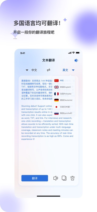 2、语音朗读:提供翻译结果的语音朗读功能,帮助用户更好地掌握发音。