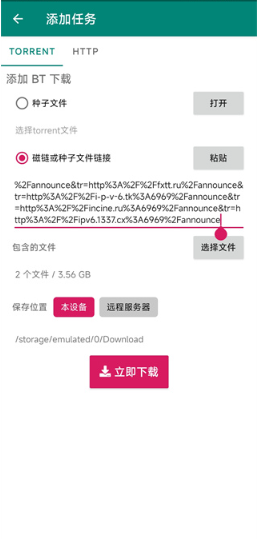 1、下载进入bitcomet手机版,点击右下角的加号即可添加种子文件或者磁力链接