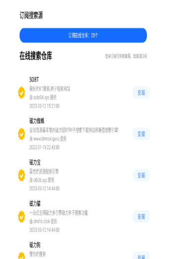 3、浏览可用的搜磁器搜索源,选择您感兴趣的源,点击“安装”以将其添加到您的应用中