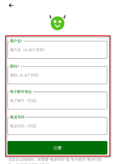 4、请设置用户名、密码、电子邮件地址、电话号码,点击注册即可