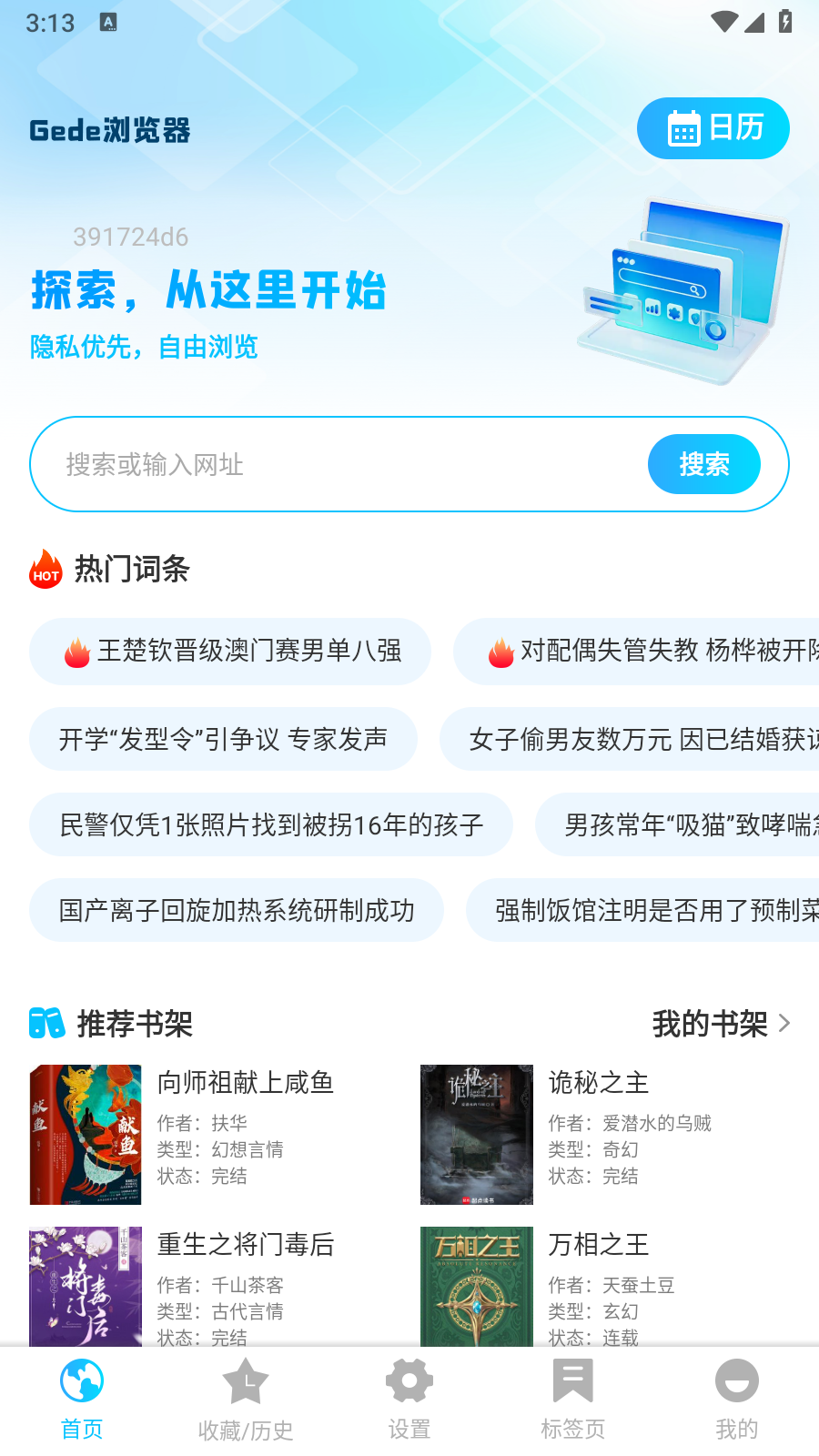 Geed浏览器App是非常实用的免费浏览器,App支持输入关键字或者网址进行搜索,一键搜索即可获取相关信息,首页还提供热门词条、推荐小说等,无论是想搜索什么内容都很方便,软件还支持隐私模式,可以完全保护用户的隐私,快点下载吧!