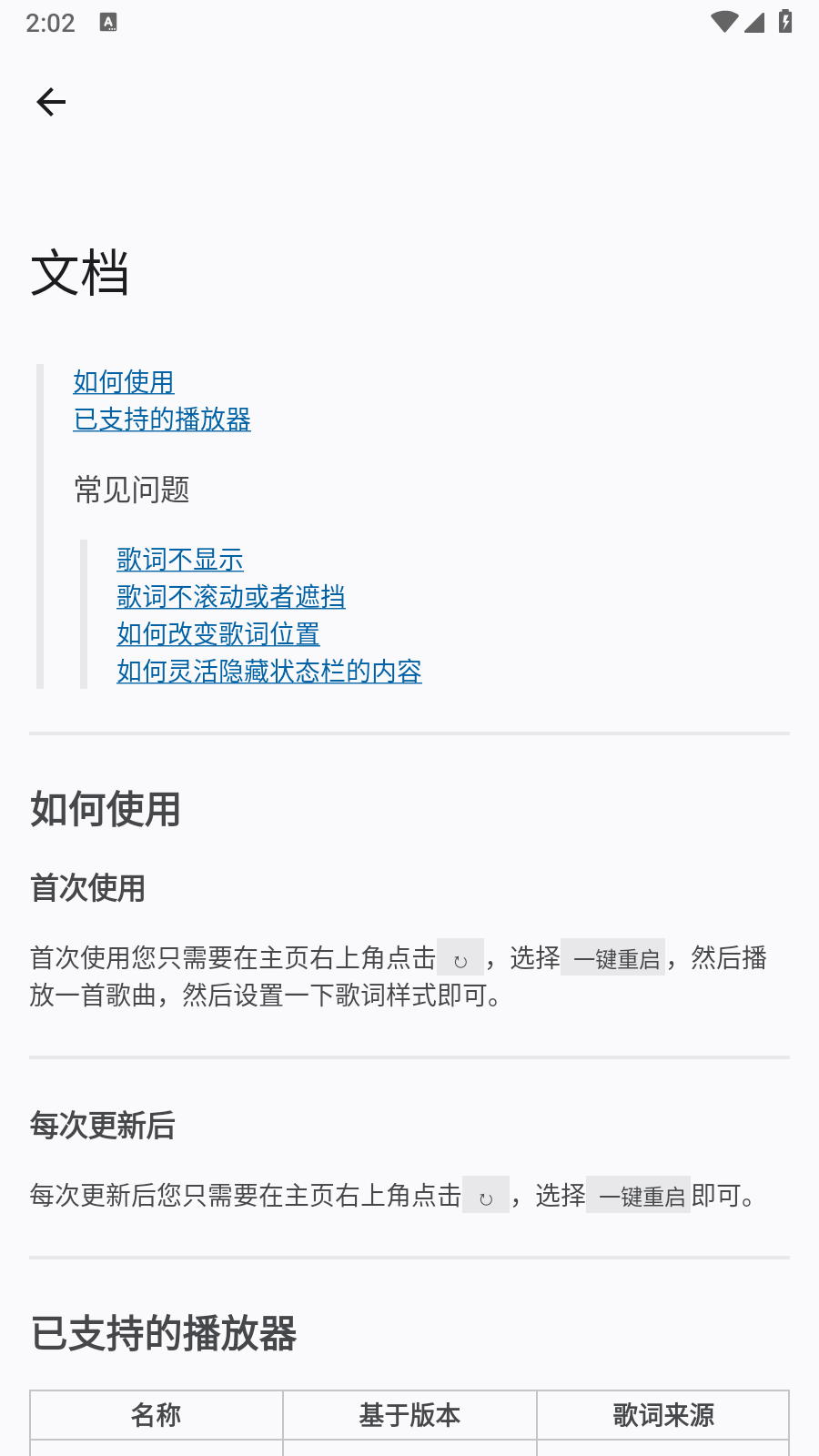 ①根据歌词提供方式在音乐播放器设置里打开相应开关