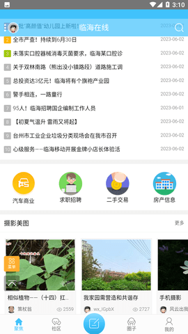 3、点击底部的【社区】,可以看到有很多生活资讯,还有名声信息