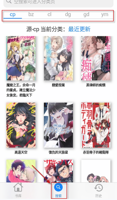 1、下载安装并打开MangaBoya后,点击底部导航栏中的“搜索”按钮