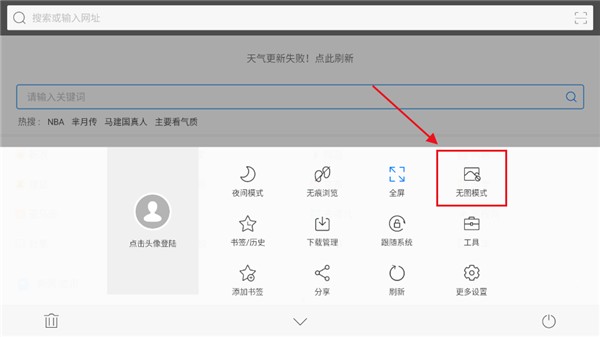 2、可以看到【无图模式】,直接点击就会生效