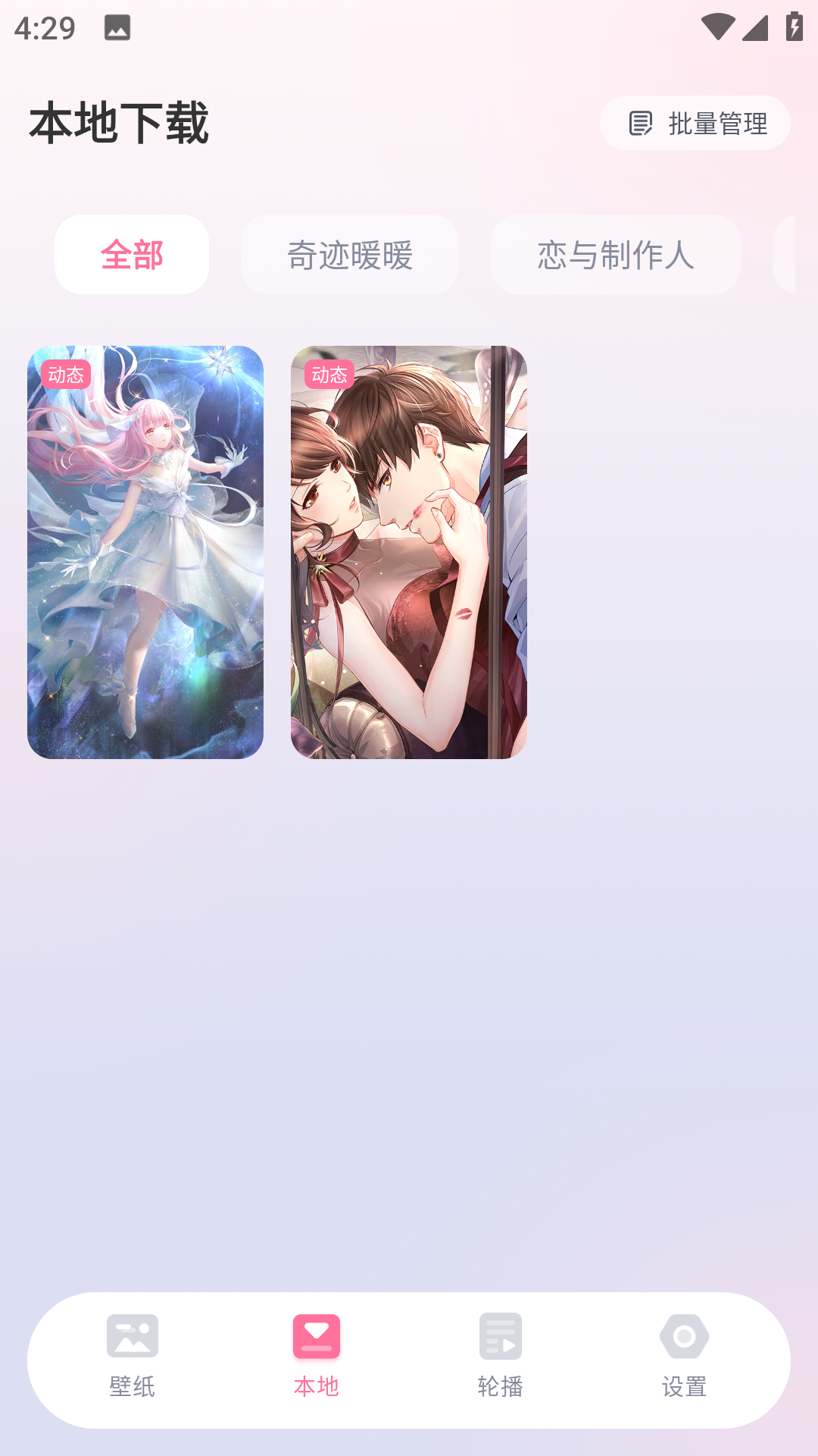 3、叠纸旗下游戏角色壁纸都可以找到,还支持导入本地视频、图片,定制桌面背景。