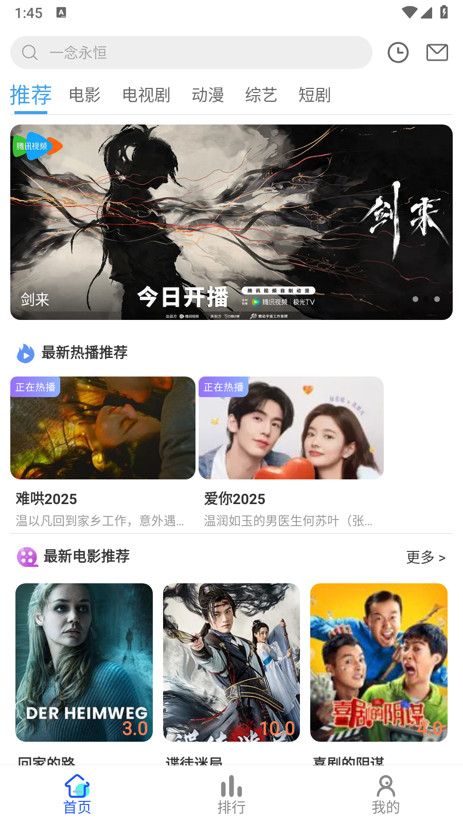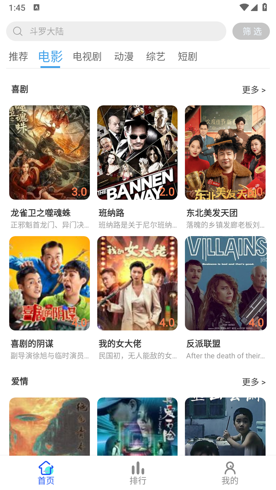 2.App支持影视搜索功能,点击首页的搜索框
