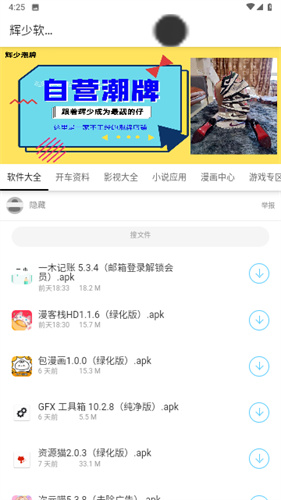 辉少游戏盒子APP堪称玩家的掌上宝库,软件汇聚海量游戏与软件资源。轻松获取小说、漫画、电影以及最新的游戏和实用工具APP,想要的资源基本上都一应俱全,分类非常精细,满足不同使用情况的需求。所有资源免费下载,每日更新,确保你随时畅享新鲜内容。多版本选择,覆盖范围非常全面,绝对能满足你的挑剔口味。