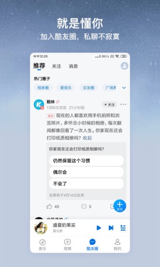 3、始终更新最新产品、音乐库,保证音乐紧跟时尚提供更丰富歌曲内容。