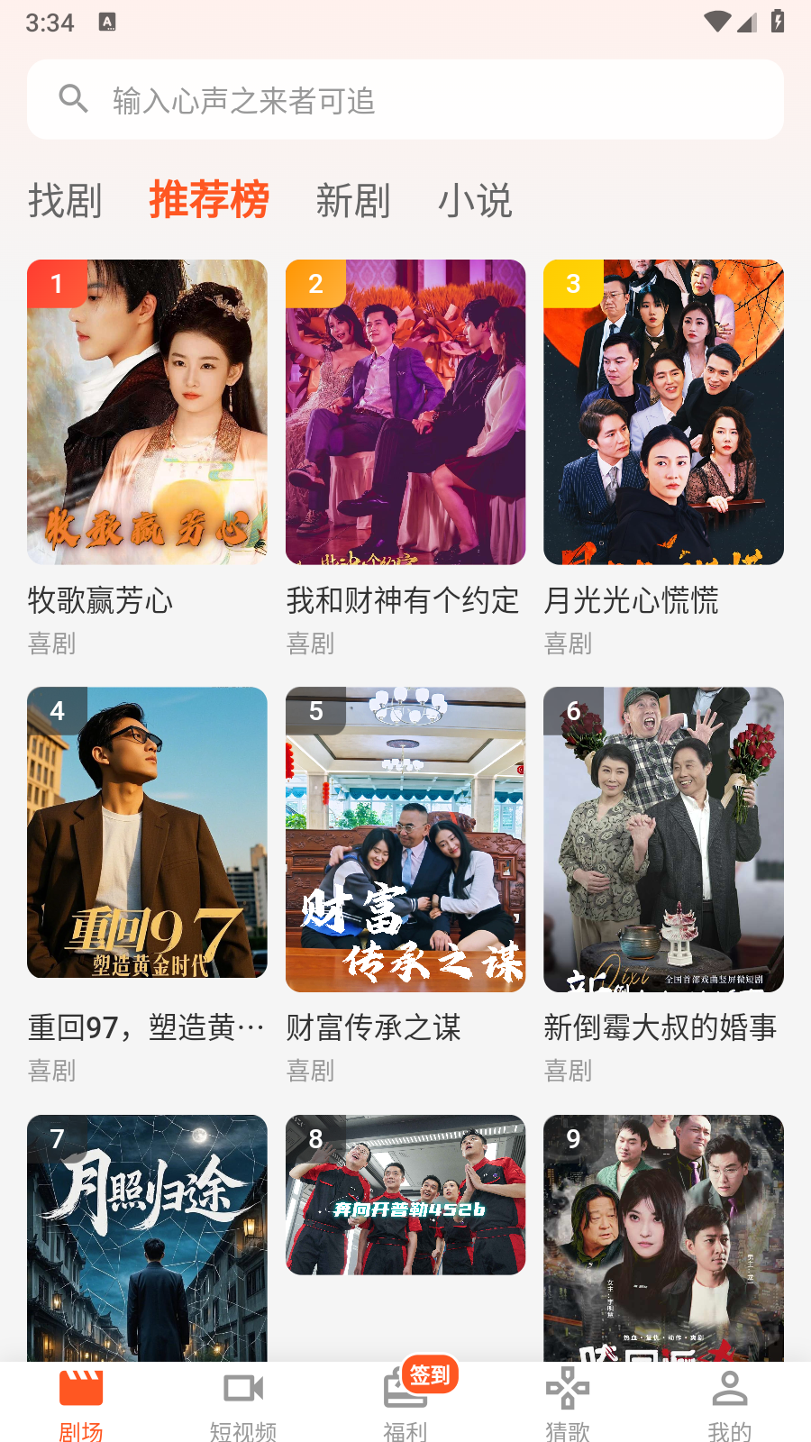2.点击排行榜,查看热门短剧榜单,随意选择感兴趣的短剧即可播放