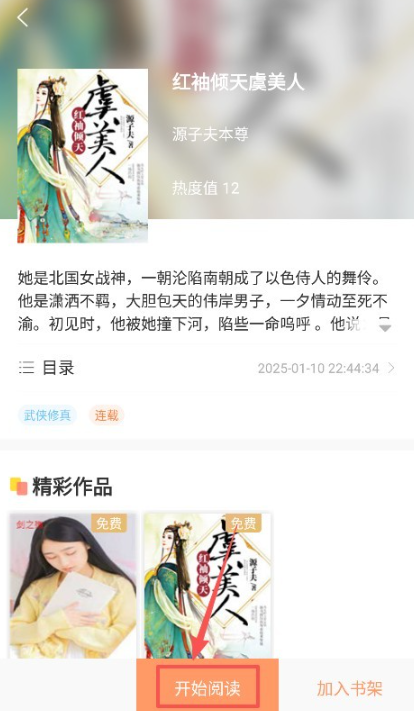 4、用户点击选择感兴趣的小说就能够了解详情了