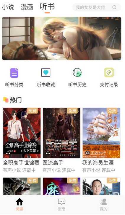 1、点击听书按钮选择一本你想听的书