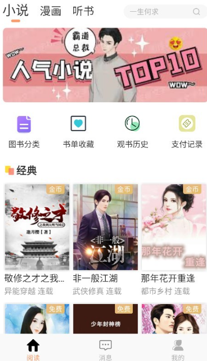 2、进入到阅读页面之后,用户可以看到各种小说