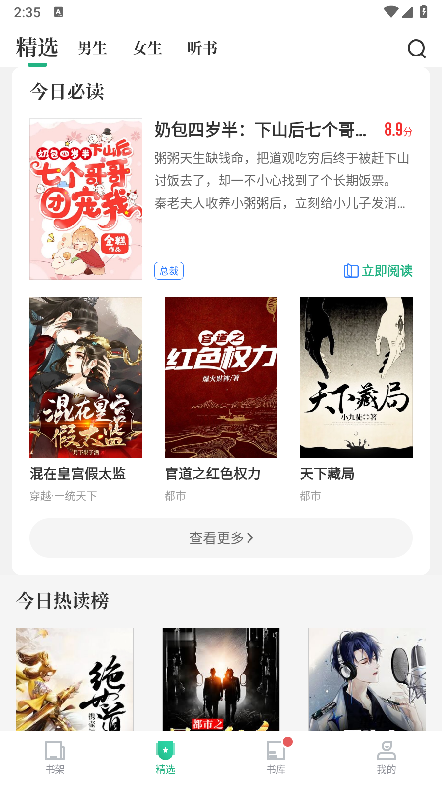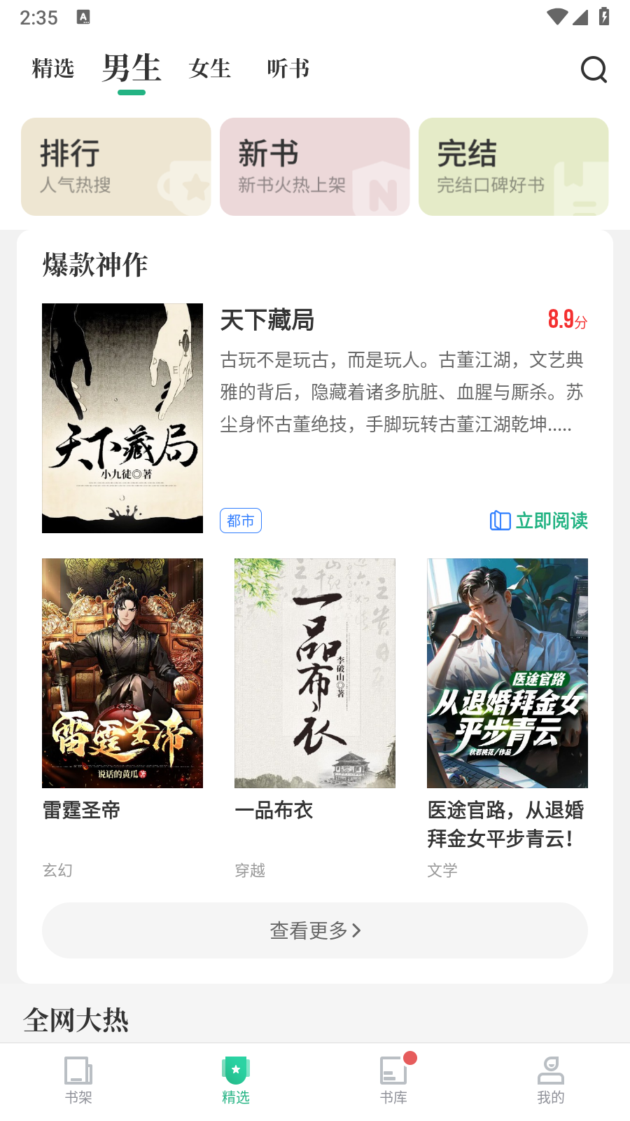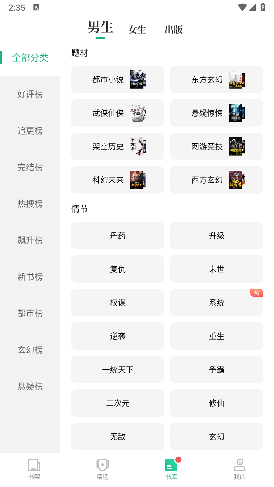 2.点击书库页面,可以浏览不同的书籍分类,包括好评榜、追更榜等
