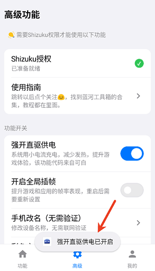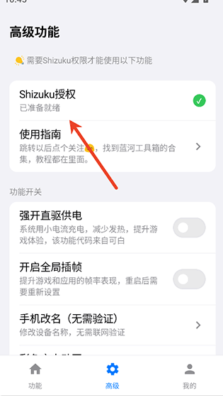 2、像强开直驱供电功能需要用户使用Shizuku授权激活使用