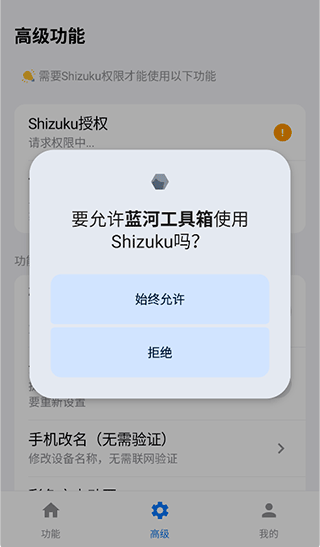 3、激活的方式十分简单下载安装Shizuku后,按照其教程先激活Shizuku,就可以在蓝河工具箱app中进行授权了
