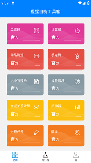 猩猩自嗨工具箱是非常强大的工具合集,为你提供超多不同类型的实用工具,随时可以在线进行设置,包含各类计算器、单位转换、手电筒、二维码生成即可,打造便捷的使用体验,在这里帮助用户可以轻松进行设置,为你提供多种不同类型的工具分区。