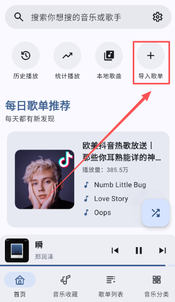 1、进入到首页点击导入歌单的按钮