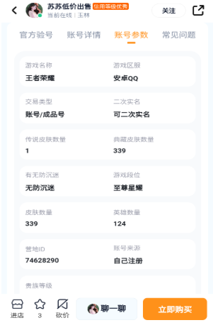 4、往下滑动,可以查看这款账号详细的账号参数